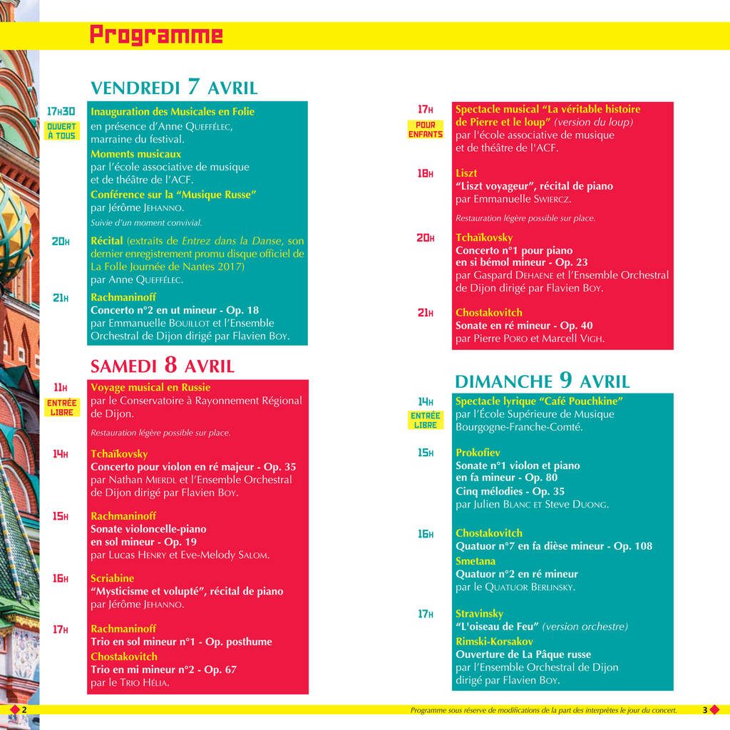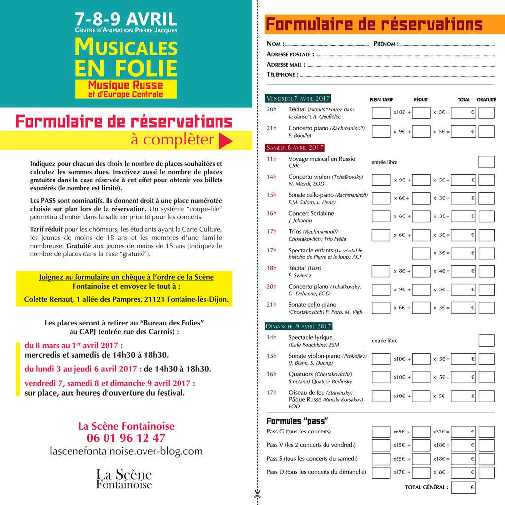 Comme vous l'avez déjà vu sur ce visuel de nos prochaines Musicales en Folie, votre festival préféré se déroulera les 7, 8 et 9 avril prochains, avec un programme somptueux...Notre billetterie (le "Bureau des Folies") sera ouverte tous les mercredis et samedis, l'après-midi de 14h30 à 18h30. Nous serons heureux de vous y accueillir et de répondre à toutes vos questions.