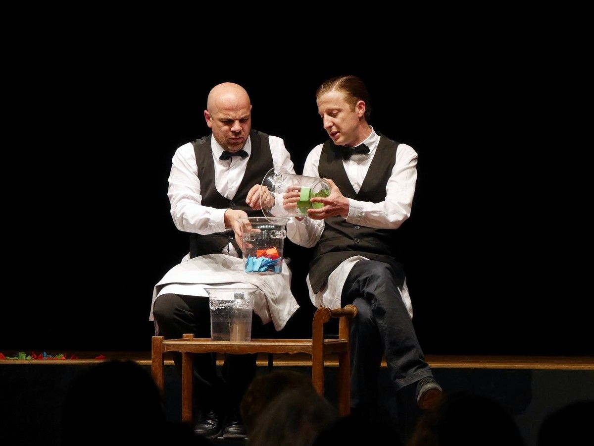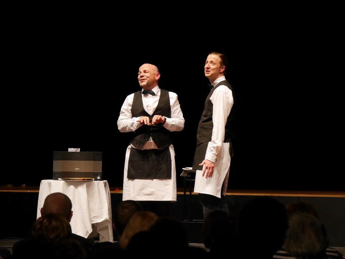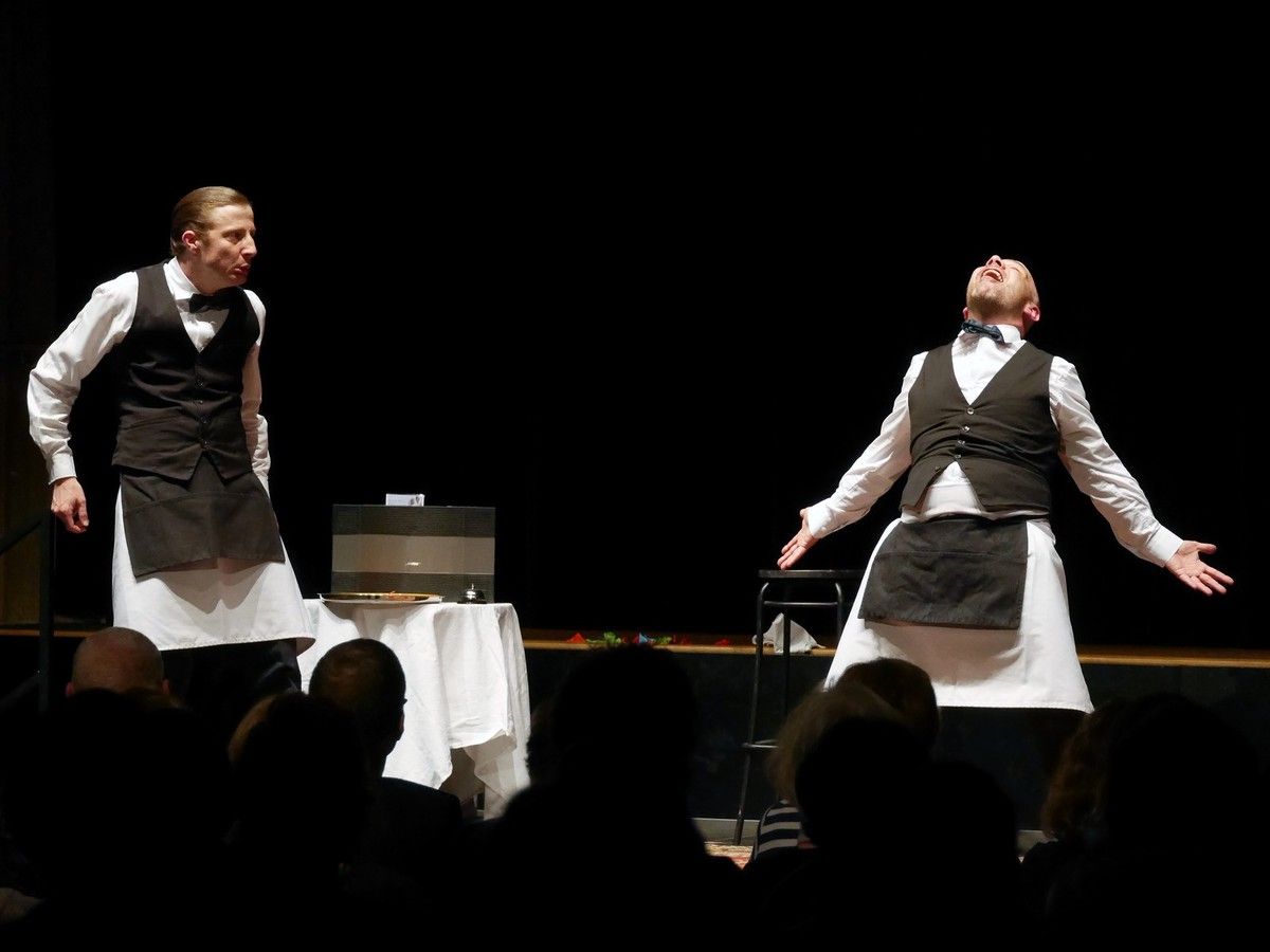 Le public est venu en nombre ce jeudi 9 mai au CAPJ. Ils étaient 150 à découvrir Jérôme Hudeley et Julien Jobert, en tenue de garçons de café, sur la scène fontainoise. Aguerris aux techniques de l’improvisation théâtrale, ils étaient très en verve. Leur complicité, leur humour, leur créativité et leur spontanéité ont enthousiasmé le public ravi de se voir servir de dynamiques cocktails de mots, des histoires tour à tour truculentes, piquantes, drôles, déjantées, rocambolesques, contées et jouées à partir d’ingrédients … proposés par le public lui-même !